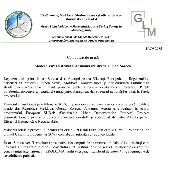 Astazi la Soroca a avut loc Ședința Consiliului de coordonare a proectului "Undă verde, Moldova! Modernizarea și eficientizarea iluminatului stradal! "
